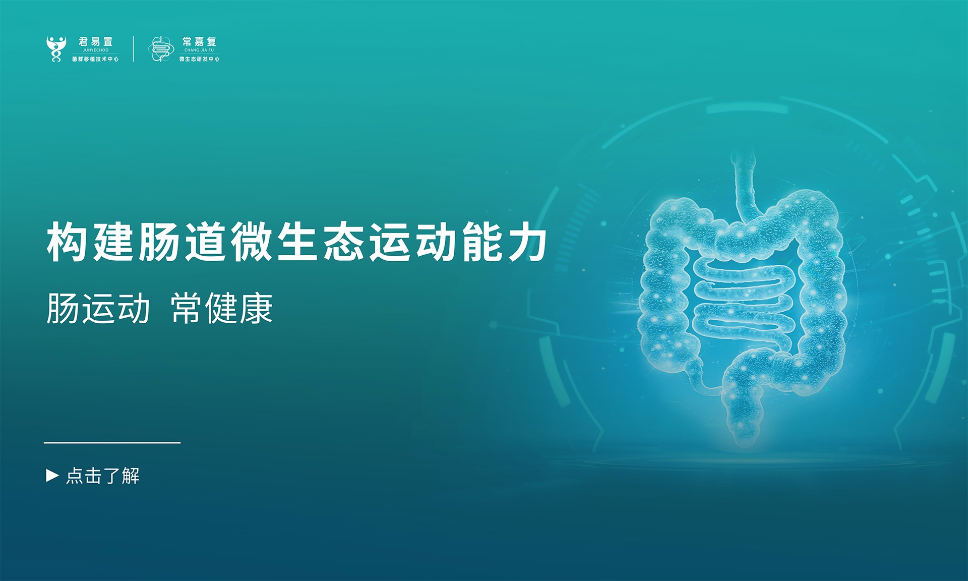 君易置生物科技是一家集臨床和基礎研究、S·FMT?運動菌群移植技術服務及微生態產品和方案研發為一體,專注于人體腸道微生態能力建設和個性化康復的高新技術企業 。公司秉承“腸運動,常健康”的核心理念,以“運動菌群 舒暢·輕盈”為研發邏輯,嚴選具有“運動菌群特征”的優秀供體,研發調配促進菌群定植的定植伴侶,致力于通過科學調配菌群定植配方,提升患者的腸道微生態運動能力,實現疾病預防與治療。